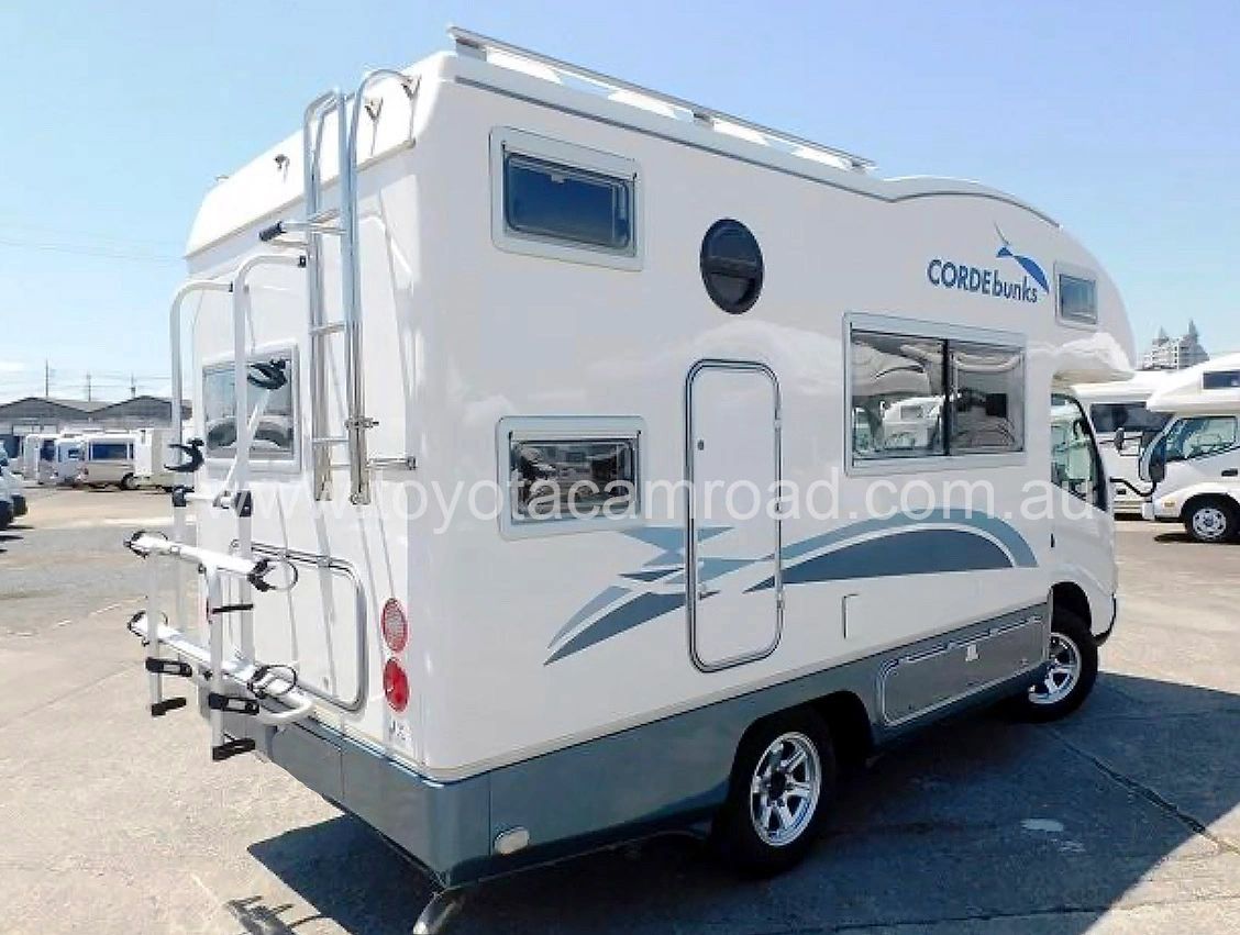 This isn’t just a motorhome; it’s a lifestyle upgrade. Picture yourself rolling into the campground, turning heads with this beast of a motorhome. Whether it’s a weekend getaway or the road trip of a lifetime, the Toyota Camroad Corde Bunks is ready for adventure.